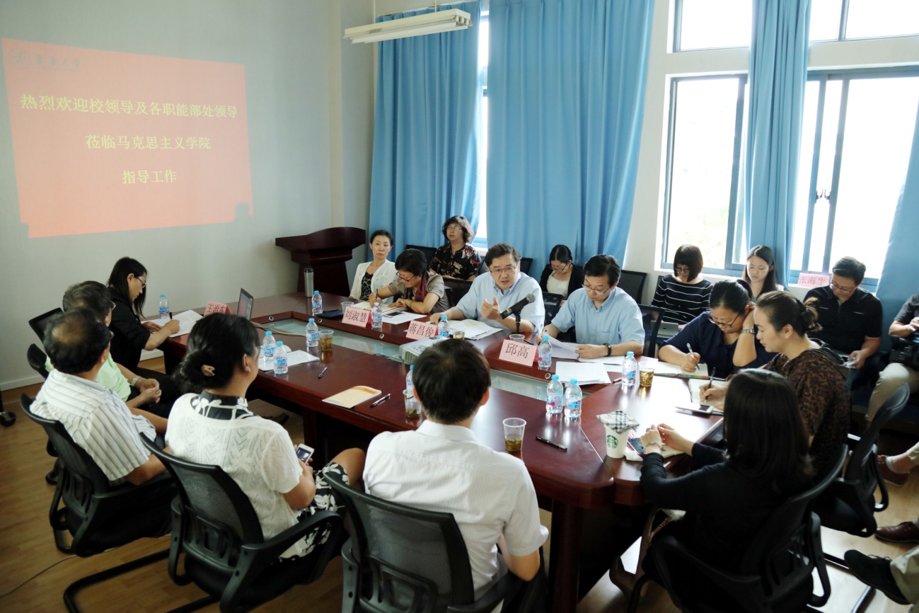 9月12日,校长蒋昌俊、校党委副书记刘淑慧、副校长邱高等一行赴马克思主义学院调研,与学院教师座谈交流。学科办、教务处、研究生部、科研处、人事处、学生处、宣传部等相关职能部处负责人一同参与。